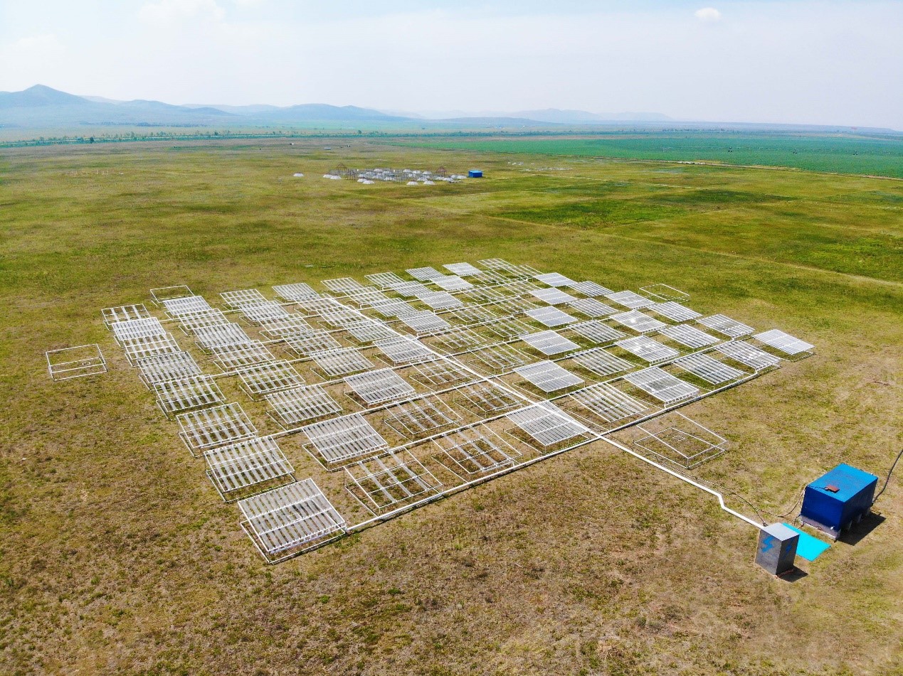根据地球系统模型预测,增强的大气环流会增加降水年际变异,从而导致极端降水事件(湿润或干旱)频繁发生,并对陆地植物生长和碳循环过程产生重要影响。草地生态系统约占陆地总面积的37%,对全球碳收支做出巨大贡献。在半干旱草地,植物生长和碳循环主要受土壤水分有效性的影响,因此研究和量化草地碳循环和降水量的关系将有助于准确预测气候变化情景下的陆地碳动态。已有研究发现,存在极端降水年份的情况下,草地碳循环过程与降水量呈现非线性饱和响应。驱动这种非线性的主要机制之一可能是氮限制。然而,目前还缺乏足够的证据来支持非线性响应和氮限制假设。为了探究草地生态系统碳循环对极端降水的响应,并检验氮限制是否会改变两者之间的关系,本课题组在内蒙古半干旱草地建立了一项包括9个降水梯度(−60%,−45%,−30%,−15%,对照,+15%,+30%,+45%和+60%)和两个氮添加水平(0和10 g N m-2 yr-1)的野外控制实验,并开展相关研究。
